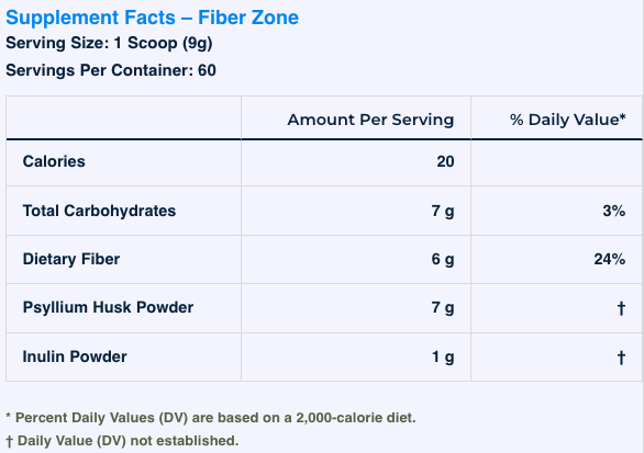 Fiber Zone – daily fiber support for appetite, digestion, and regularity.