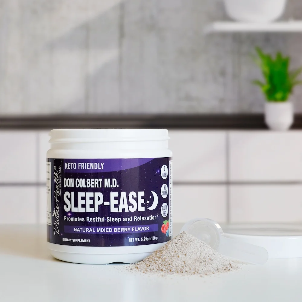 Divine Health’s Sleep-Ease Powder by Dr. Don Colbert MD. A soothing formula designed to support restful sleep, relaxation, and overall nighttime wellness.